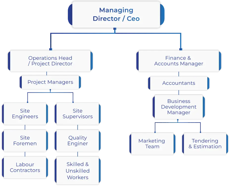 • Managing Director / CEO – Overall head of the company; decision-maker.